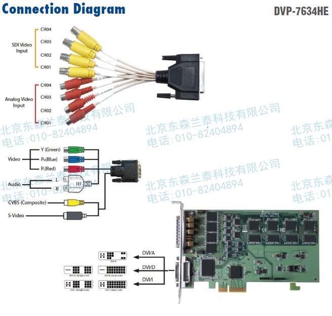 研华利用软件与硬件压缩以及多种计算机主机接口 (从 USB 到 PCI、PCIe、PCI 104 及迷你适配卡),提供完整的工业级 SD (标准画质) 与 HD (高画质) 模拟影像采集卡。 研华的工业级采集卡支持各种输入接口,包括 YPbPr、SDI、HDMI、DVI、BNC 及 RCA。DVP-7634HE is a PCIe-bus, hardware compression video capture card with 4ch SDI + VGA/HDMI/DVI/Composite/S-Video/YPbPr video and input. DVP-7634HEsupports H.264 high profile compression format at up to Full HD 1080p for each channel. With an easy-to-use software development kit (SDK) and flexibility to stack multiple cards, DVP-7634HE is an ideal solution for various video capture applications.