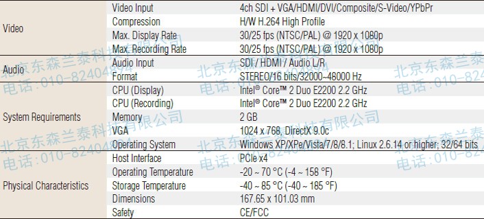 4ch SDI + VGA/HDMI/DVI/Composite/S-Video/YPbPr video input with H.264 (High Profile) hardware compression
