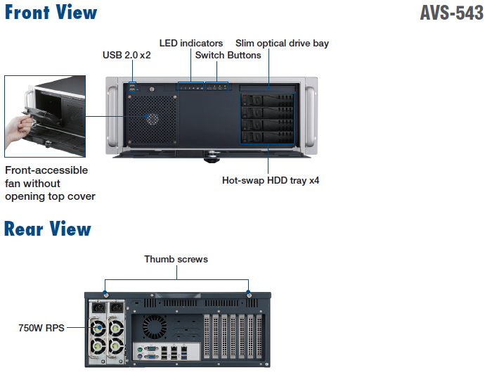 | AVS-543-01A1E | 4U Rackmount Xeon E5-2600 Video Wall Controller Supporting 5 Datapath Cards |