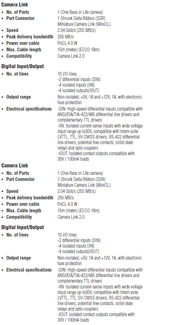 ECCO: 延长的Camera Link线缆长度