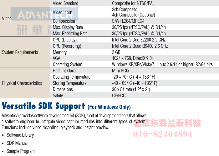 | MOS-4140C-Y1201 | 2ch H.264/MPEG4 MiniPCIe Video Capture Card with SDK |
