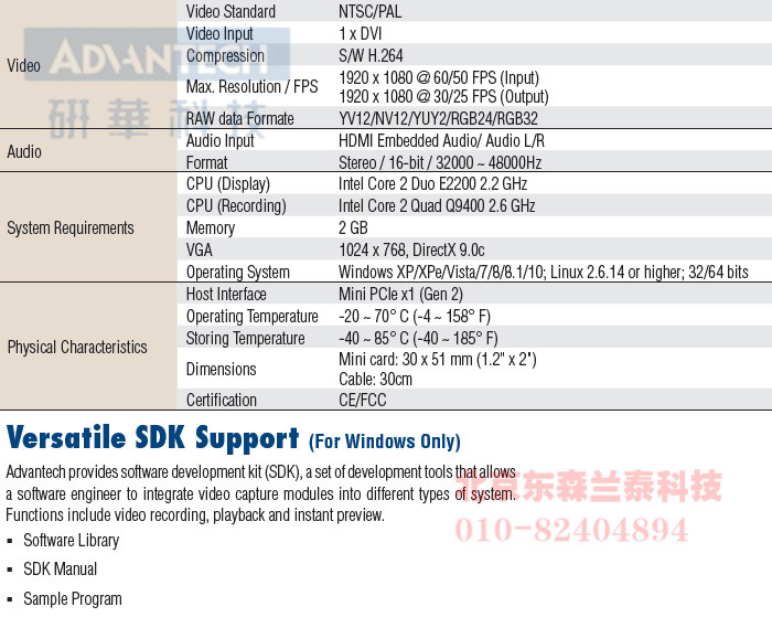 | MOS-4140D-Y1101 | 1-ch Full HD H.264 MiniPCIe Video Capture Card iDoor Module |