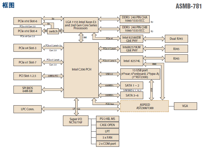 1155 插槽 单处理器 ATX服务器板卡,支持2 PCIe x16 扩展插槽