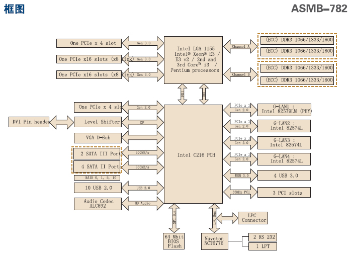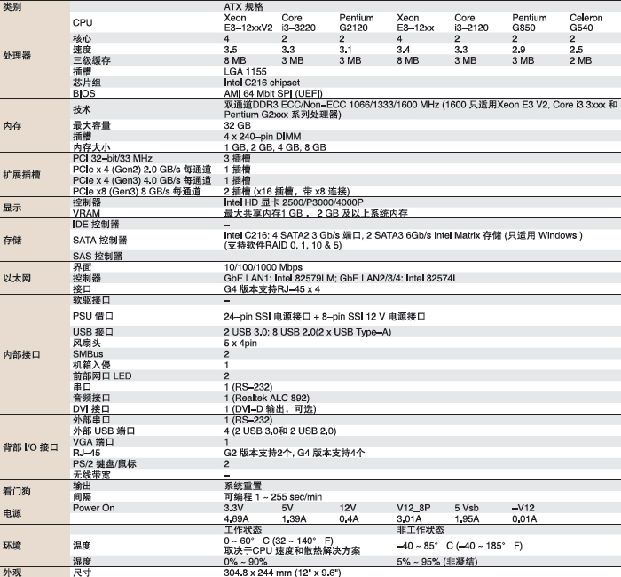 LGA 1155 Intel® Xeon® E3 / E3 v2 / 第二代和第三代 Core™ i3/ Pentium 处理器