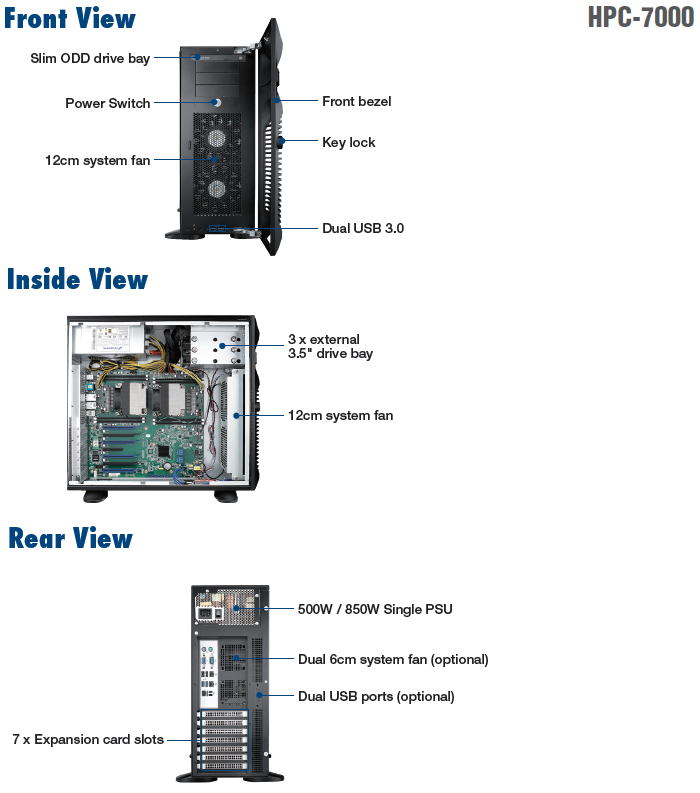 | HPC-7000-50ZXE | HPC-7000 Tower chassis w/ 500W SPS |
