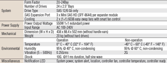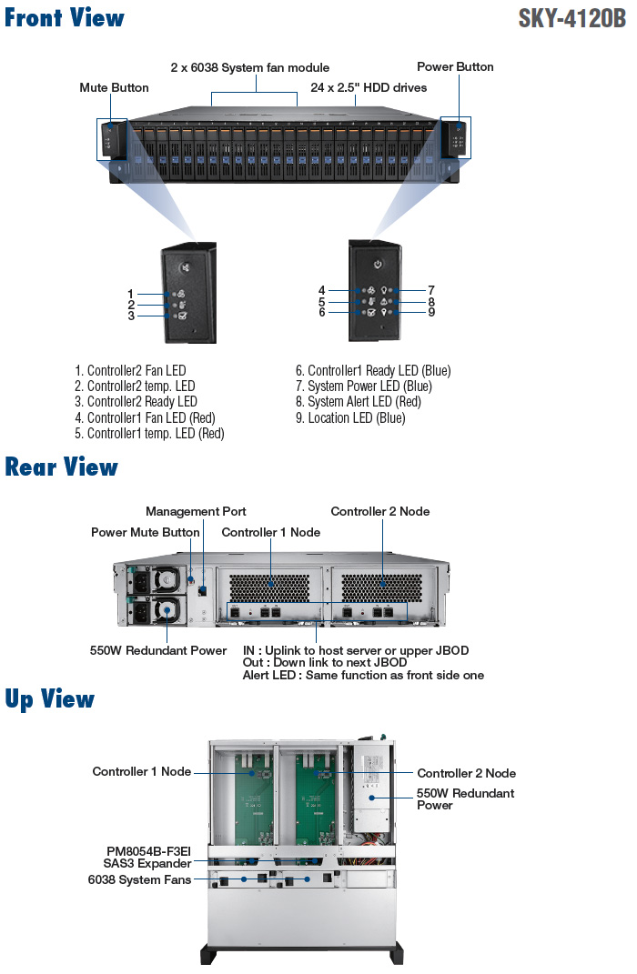 | SKY-4120B-R5A1E | 2U 24-Bay dual controller JBOD enclosure | |