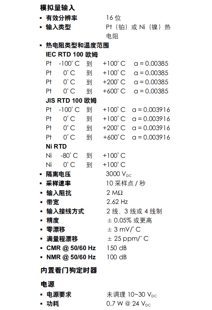 模拟量输入模块使用微处理器控制整合A/D转换芯片,将电压、电流、热电偶或者热电阻信号转化为数字量信号。然后根据 模块的设置将数字量表示为工程单位、16进制格式或者满量程的百分比。当主机请求的时候,数据通过 RS-485 界面传输。模拟量输入模块提供信号调理、A/D转换、量程转化和 RS-485数字通讯功能。通过提供 A/D输入光偶隔离和高达3000V的变压器隔离,模块可以保护用户设备免受接地环流和电源浪涌的危害。