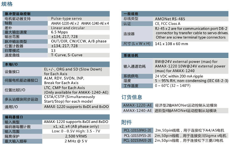 | AMAX-1220-AE | 基板式2轴AMONet运动控制从站模块 |