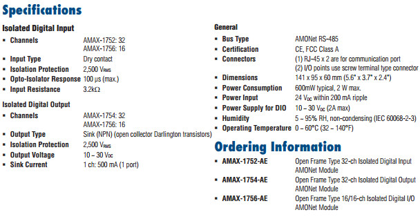 | AMAX-1754-AE | 基板式32路隔离数字量输出AMONet从站模块 |