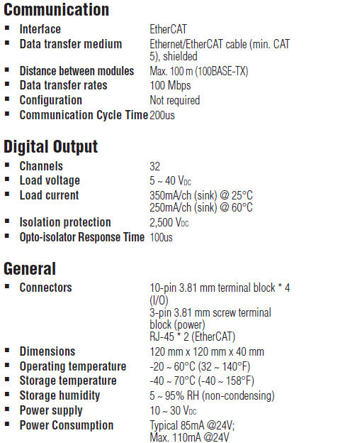 | AMAX-4834-AE | 32-ch isolated digital output EtherCAT remote I/O module |