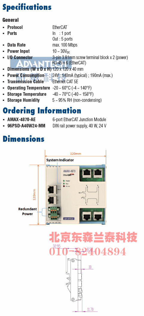 and maintaining work. AMAX-4870 has been verified by EtherCAT conformance test tool and can support major third party masters (TwinCAT, Codesys, Acontis).