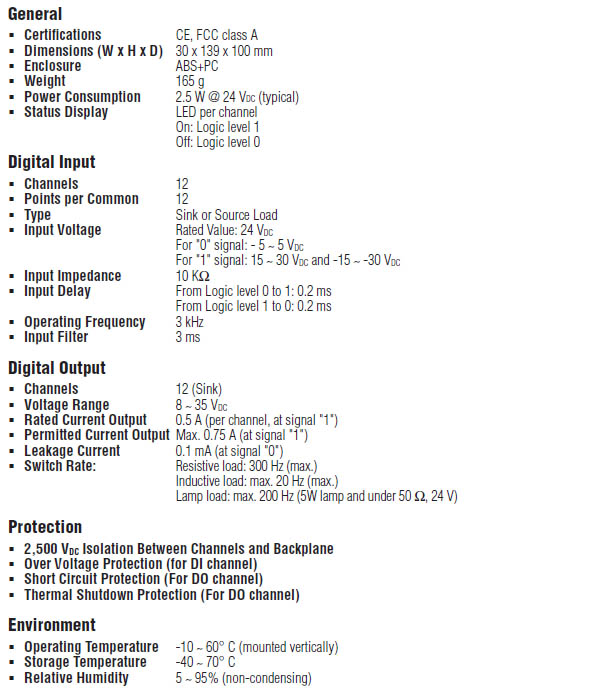 12 DI通道和12 DO通道
