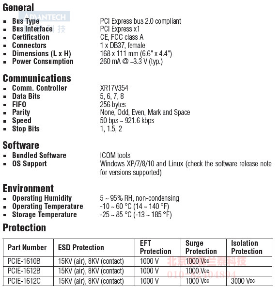 PCIE-1612B-AE  4-port RS-232/422/485 PCI Express comm. card w/surge