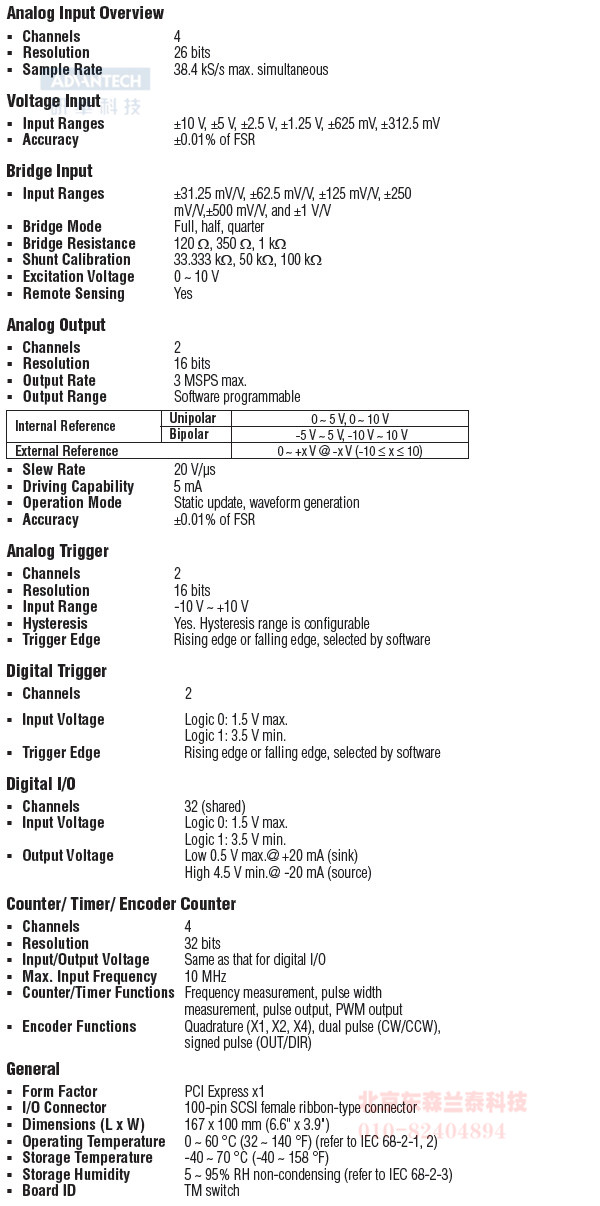 PCIE-1813 is a 26-bit high-resolution multifunction data acquisition PCI Express card specifically designed for bridge sensor inputs, such as strain gauges, load cells, pressure sensors, and torque sensors. PCIE-1813 also features 2-ch, 16-bit analog outputs with waveform generation capability and supports simultaneous waveform generation and analog input functions.