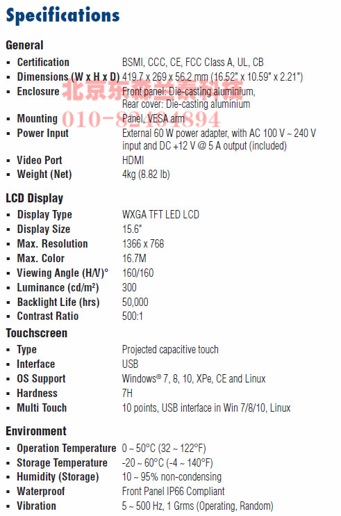 15.6寸全平面触屏WXGA TFT 液晶显示器
