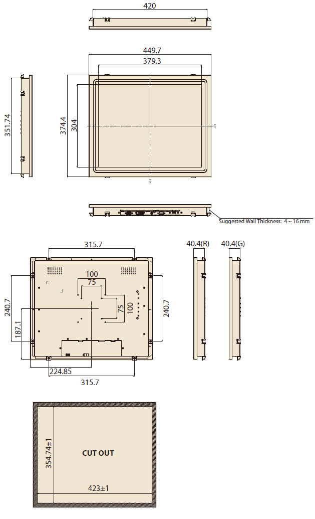 IDS-3219G-35SXA1E 19" SXGA 350 cd/m2 LED Panel Mount Monitor