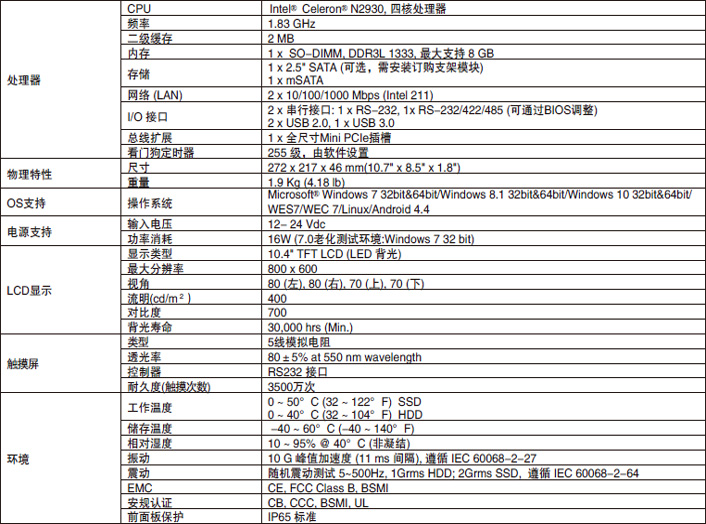 PPC-3100S-RAE Intel Celeron N2930 无风扇工业平板电脑,带10.4" SVGA LED 背光