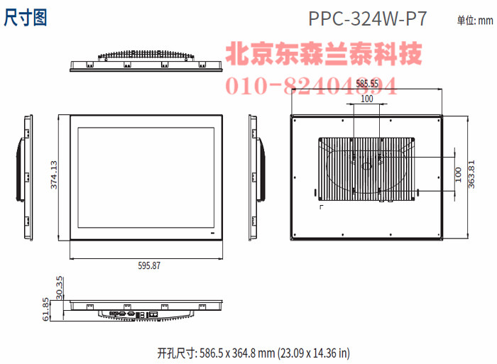 工业等级23.8" TFT LCD ,宽屏全平面10点触控电容屏