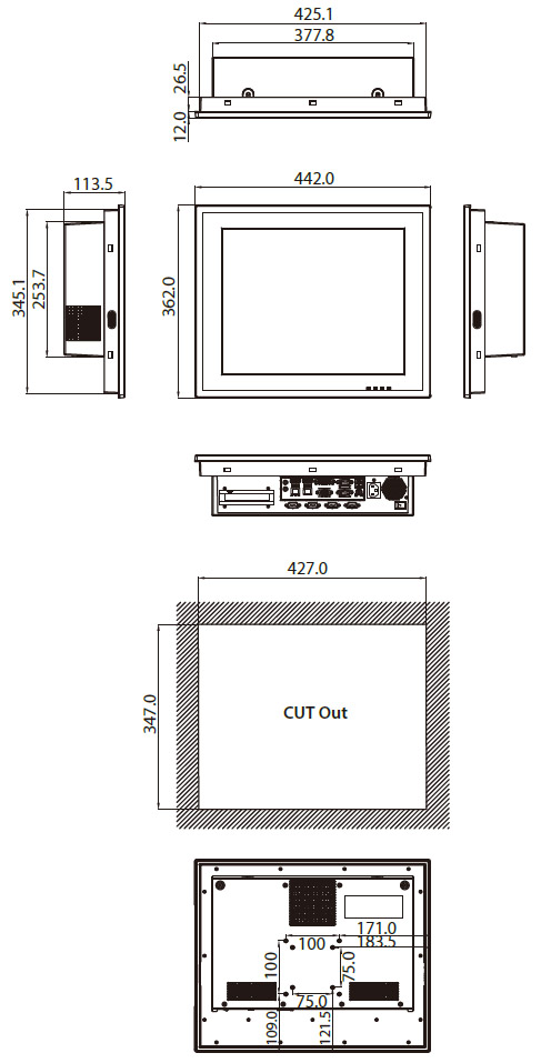 | 物理特性 | 尺寸 | 442.0 x 362.0 x 113.5 (mm) (17.4" x 14.25" x 4.47") | |