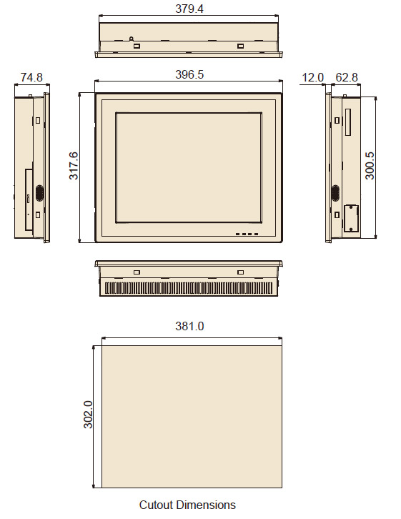 396.5 x 317.6 x 74.8 (15.6" x 12.5" x 2.95") |