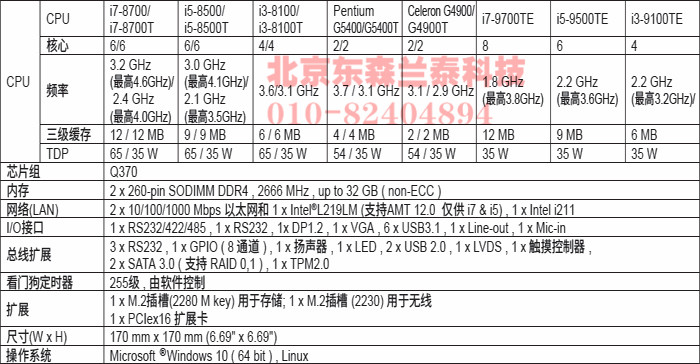 通过Intel Q370 芯片支持Intel 第8代和第9代Core™ i ® 处理器(LGA1151)
