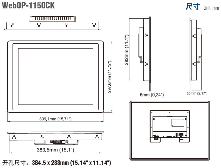 WOP-1150CK-V40Q1AE 15" XGA, 32MB (内存), 8MB(NOR) + 128MB 非线性闪存