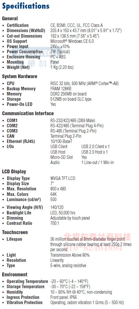 7寸WVGA工业触摸屏,Cortex™ - A8处理器,宽操作温度设计工业级可编程人机界面