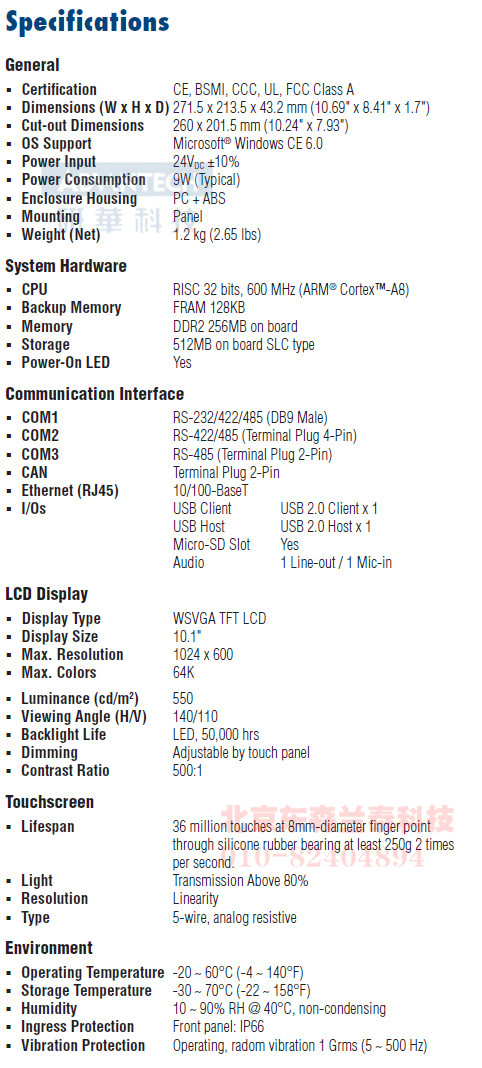 | WOP-3100T-C4BE | 10.1" WSVGA, Cortex™-A8, 256MB DDR, WinCE 6.0 |