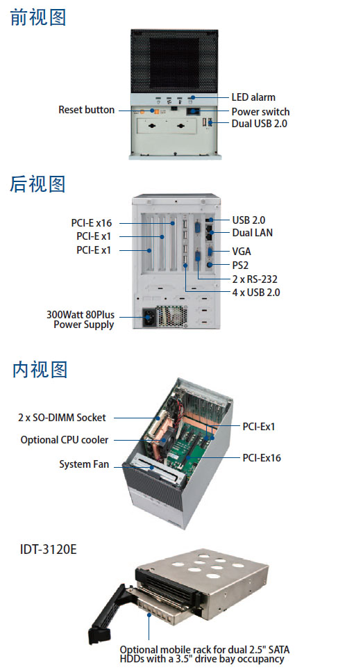 | IDT-3120E | Removable dual 2.5"HDD tray |