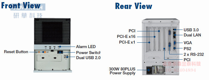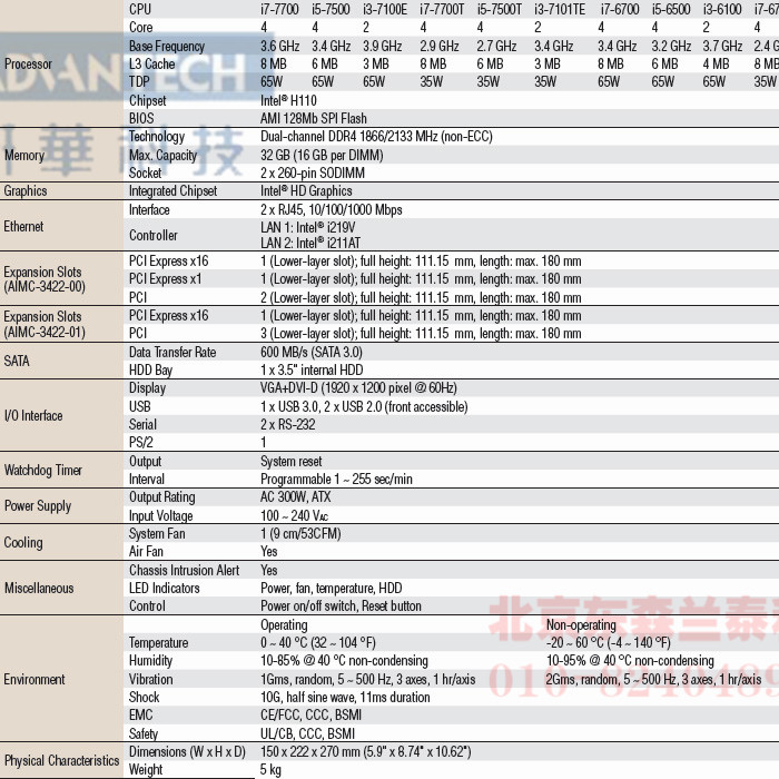 H110 PCIE*16 + PCIE*1 + 2个PCI (4扩展) 2COM, 7USB2.0, 1USB3.0 |