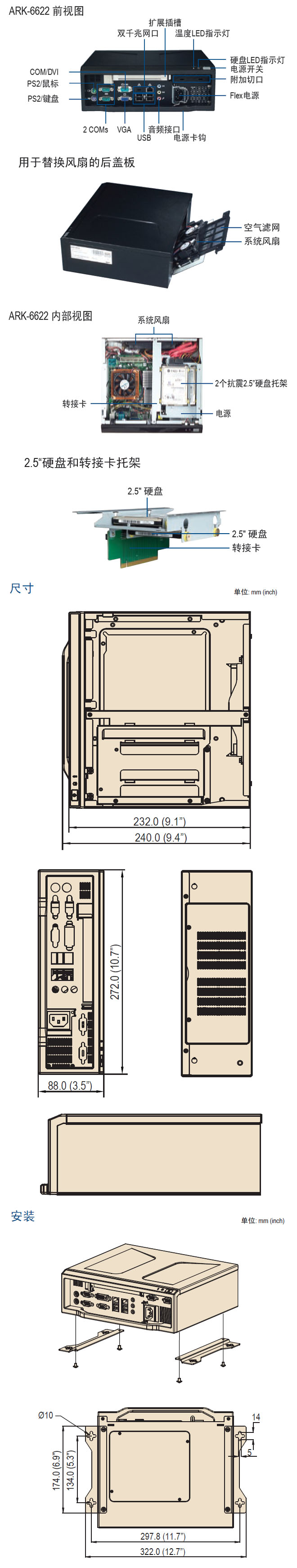 272 x 88 x 232 mm (10.7" x 3.5" x 9.1")