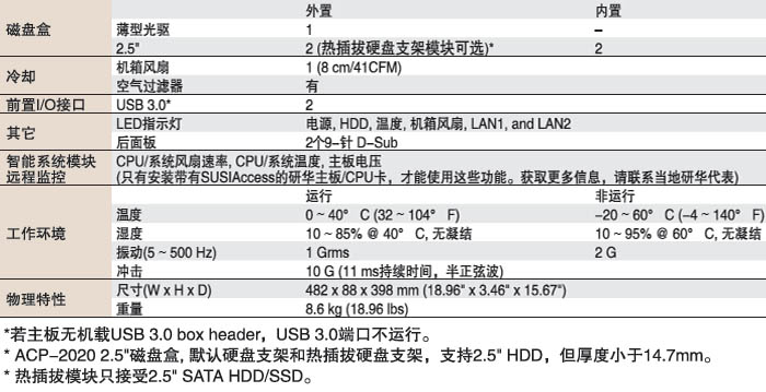 * 建议使用CPU冷却960052651N021 ,无附加卡配置时,最大CPU TDP 84W。