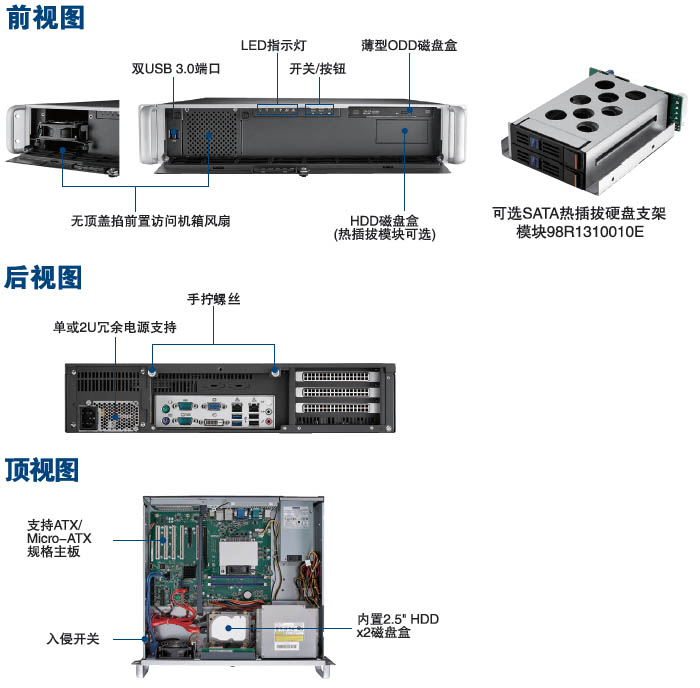 2个内置2.5"磁盘盒和2个“热插拔或外置”磁盘盒