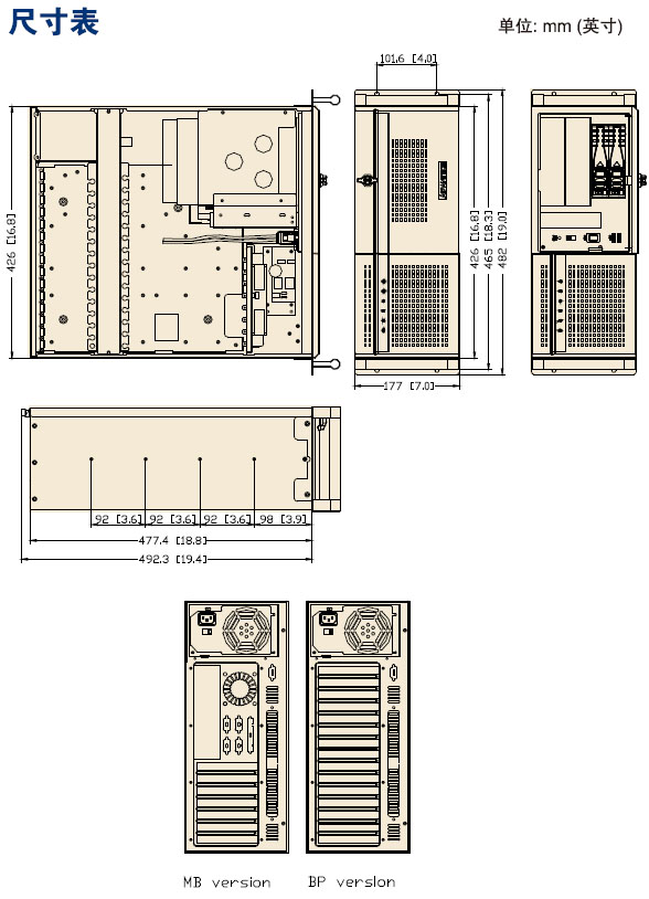 尺寸(W x H x D) 482 x 177 x 480 mm (19〃 x 7.0〃 x 18.9")