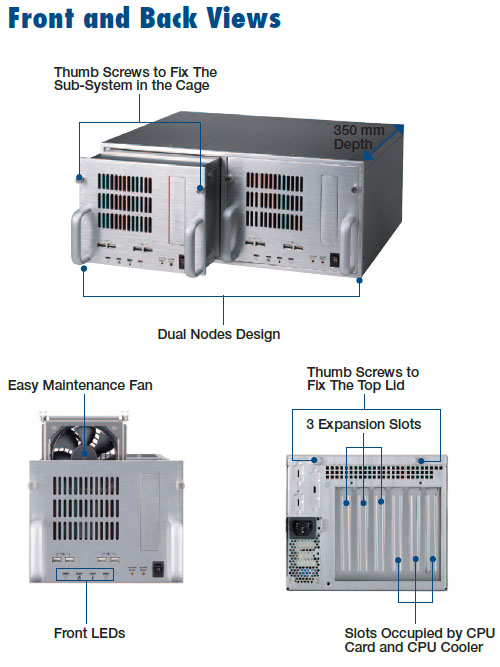 Dual-Node 350mm Depth 4U Chassis for Half-Sized Slot SBC