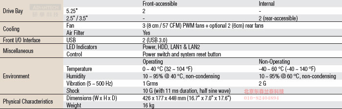 Shock-resistant 2 x 5.25" (front) + 2 x 3.5" int (rear) and optional 2 x 3.5" int. HDD bays