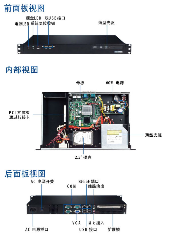 1U 紧凑无风扇上架式机箱,板载Intel®Atom™ N450 处理器