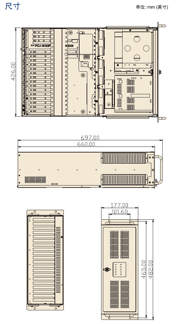 | 外观 | 尺寸(WxHxD) | 482 x 177 x 660 mm (19" x 7” x 26") | |