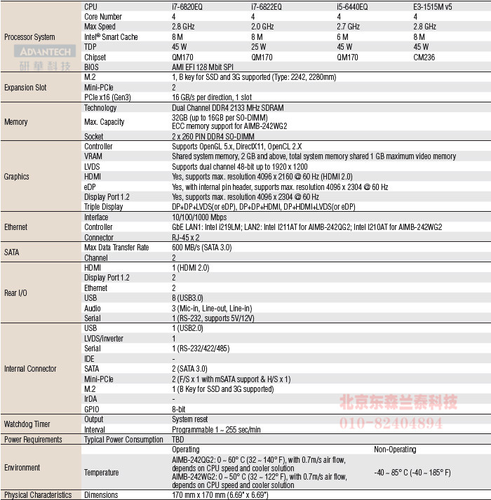 支持 Intel® Xeon, 6th Gen Core™ i mobile 处理器 (BGA),带 Intel QM170/CM236芯片组