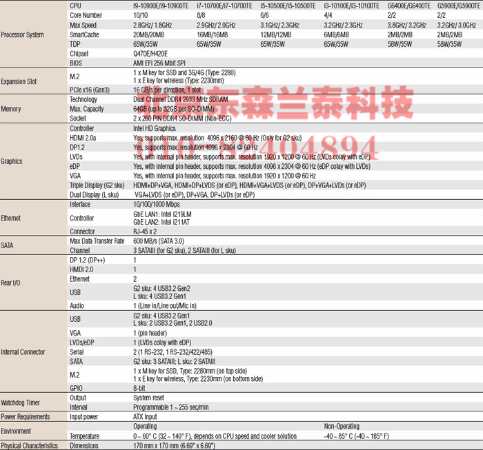 10th Gen Intel® Core™ i7/i5/i3 LGA1200 Mini-ITX w/ HDMI2.0a/DP/VGA/LVDS(or eDP), 2x COM, Dual LAN, 4x SATAIII, 4x USB3.2 Gen2, 4x USB3.2 Gen1, 2x M.2