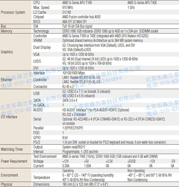 AMD T40E/T16R ISA Half-size SBC with Dual Independent Display/Dual GbE/SATA/USB/m-SATA/COM/LPT