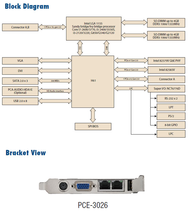 LGA 1155的Intel®Core™i7/i5/i3的半长卡SHB与PCIe/ VGA / DVI /双千兆网卡