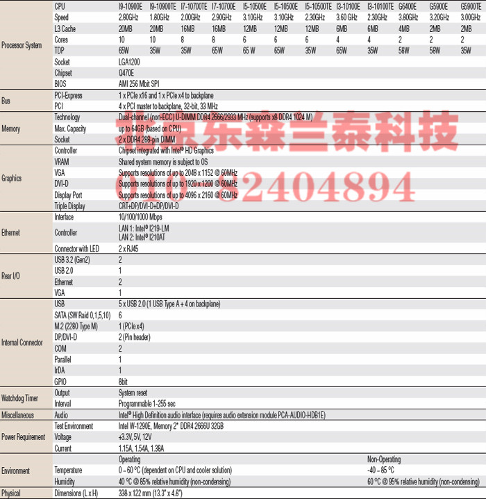 Intel® Core™ i9/7/i5/i3 LGA1200 processor with Q470E chipset